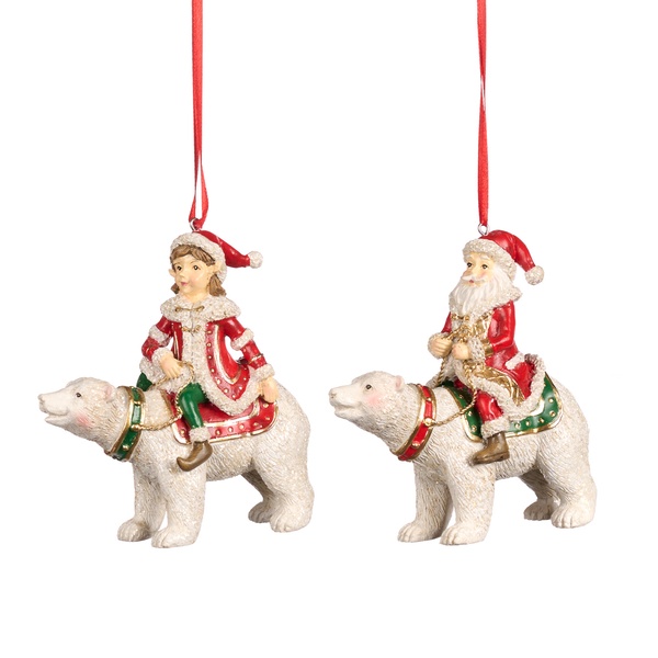 ნაძვის ხის სათამაშო-პოლარული დათვი და სანტა.ბრენდი ევროპული.ზომა 12სმ