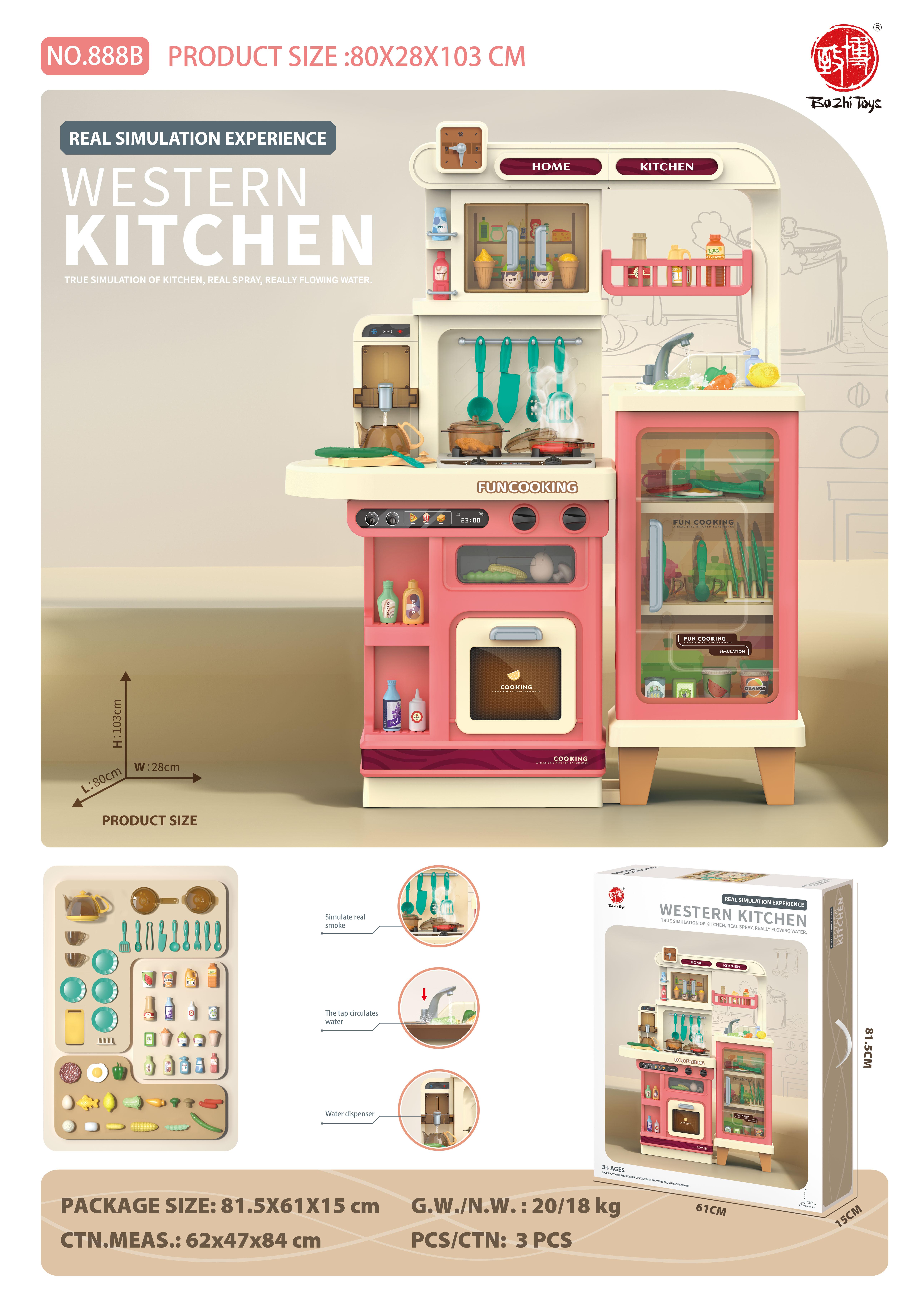 ასაწყობი სამზარეულოს ნაკრები. ორთქლის ფუნქციით. მუსიკალური, განათებით. მასალა პლასტმასი, ასაკი 3 წლიდან