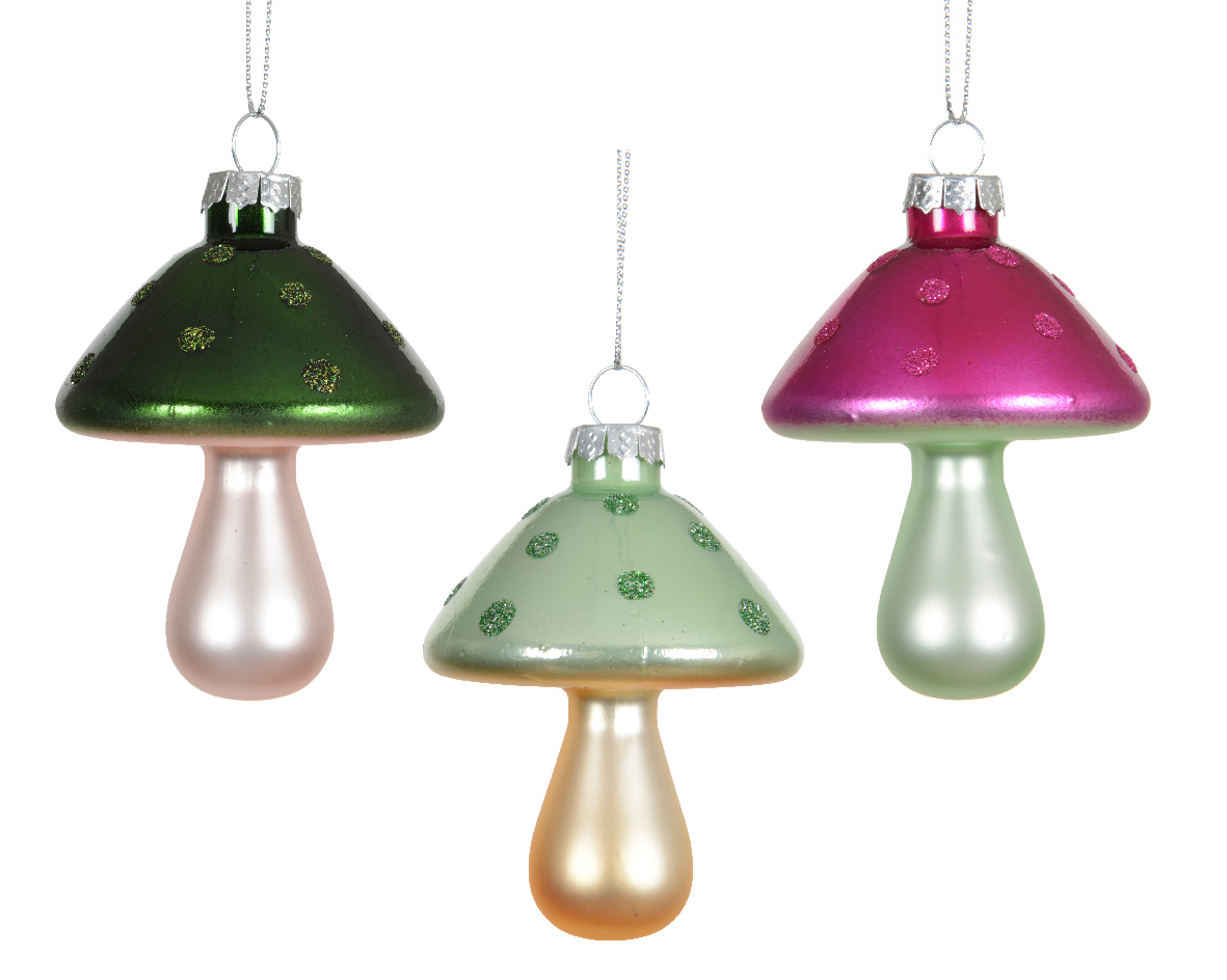 ნაძვის ხის სათამაშო სოკო.ბრენდი ევროპული.მასალა მინაა ზომა-9,2სმ