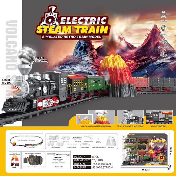 ფუქნციური მატარებელი ორთქლის იმიტაციით. მასალა პლასტმასი. ლიანდაგის ზომა 74*74 სმ. ასაკი 3 წლიდან. კოდი 08465-817-1