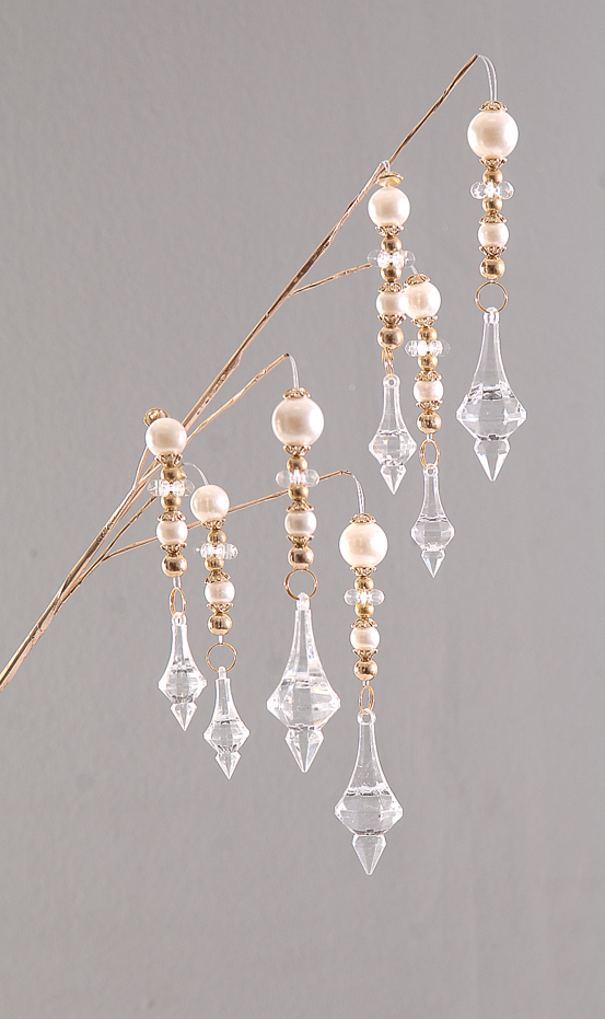 საახალწლო დეკორი - ოქროს ტოტი მარგალიტებითა და სტალაქტიტებით. ბრენდი ევროპული. ზომა: 66 სმ.